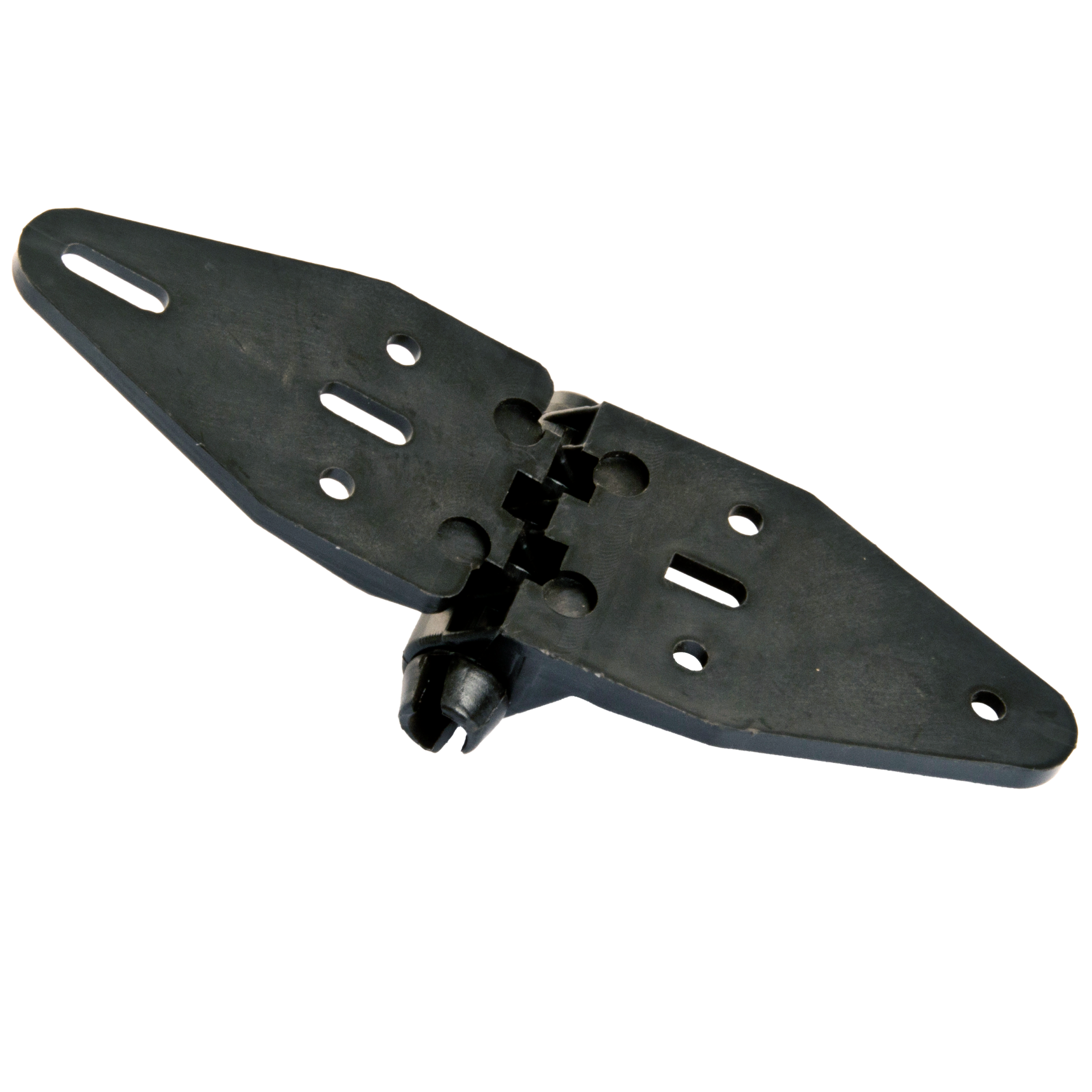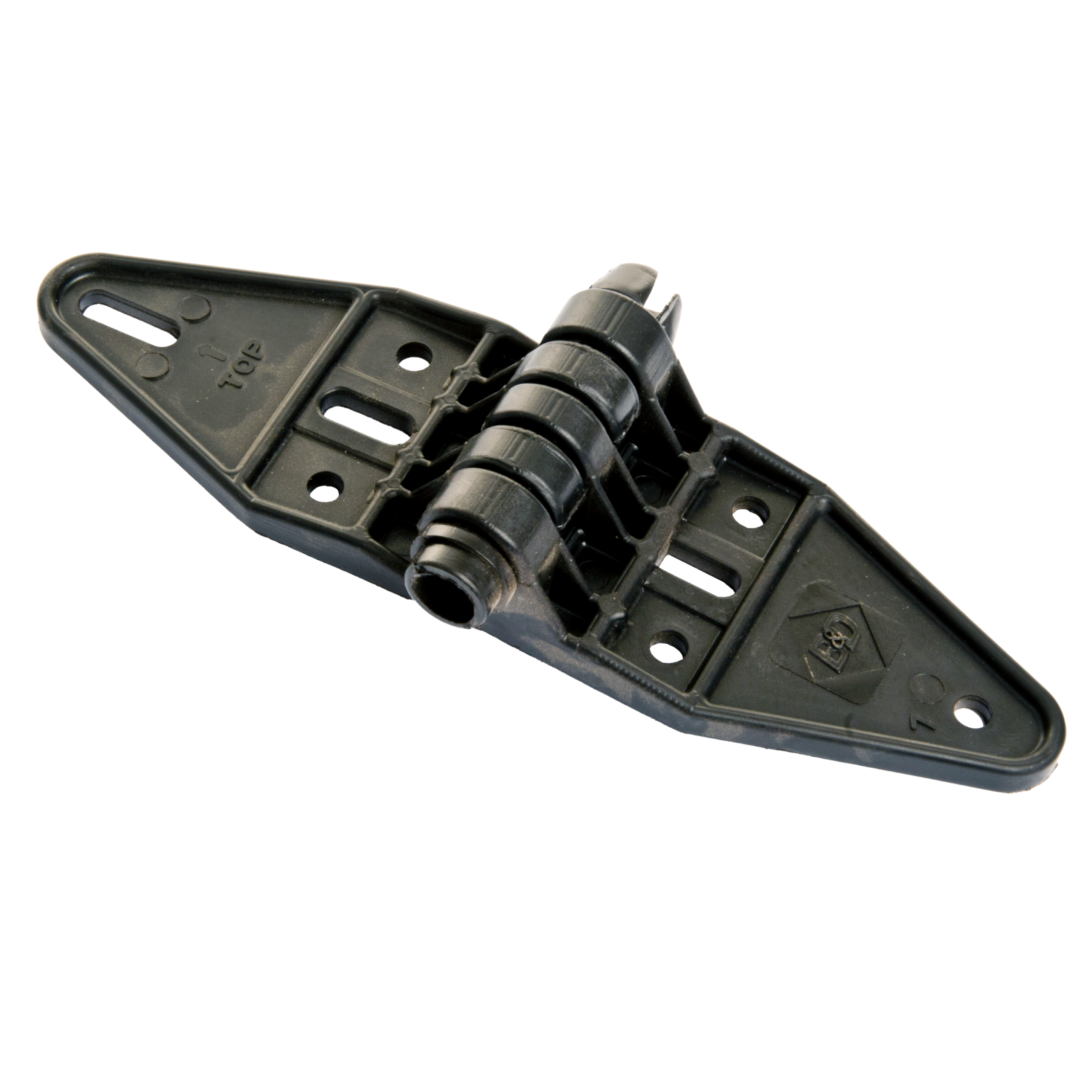 This genuine B&D plastic hinge #1 (OT6558) is designed for sectional garage doors and is used to connect the bottom panel to the second panel of the door. Manufactured from durable engineered plastic, this lightweight and corrosion resistant hinge provides reliable articulation between door panels as the door travels along the curved sections of the track.