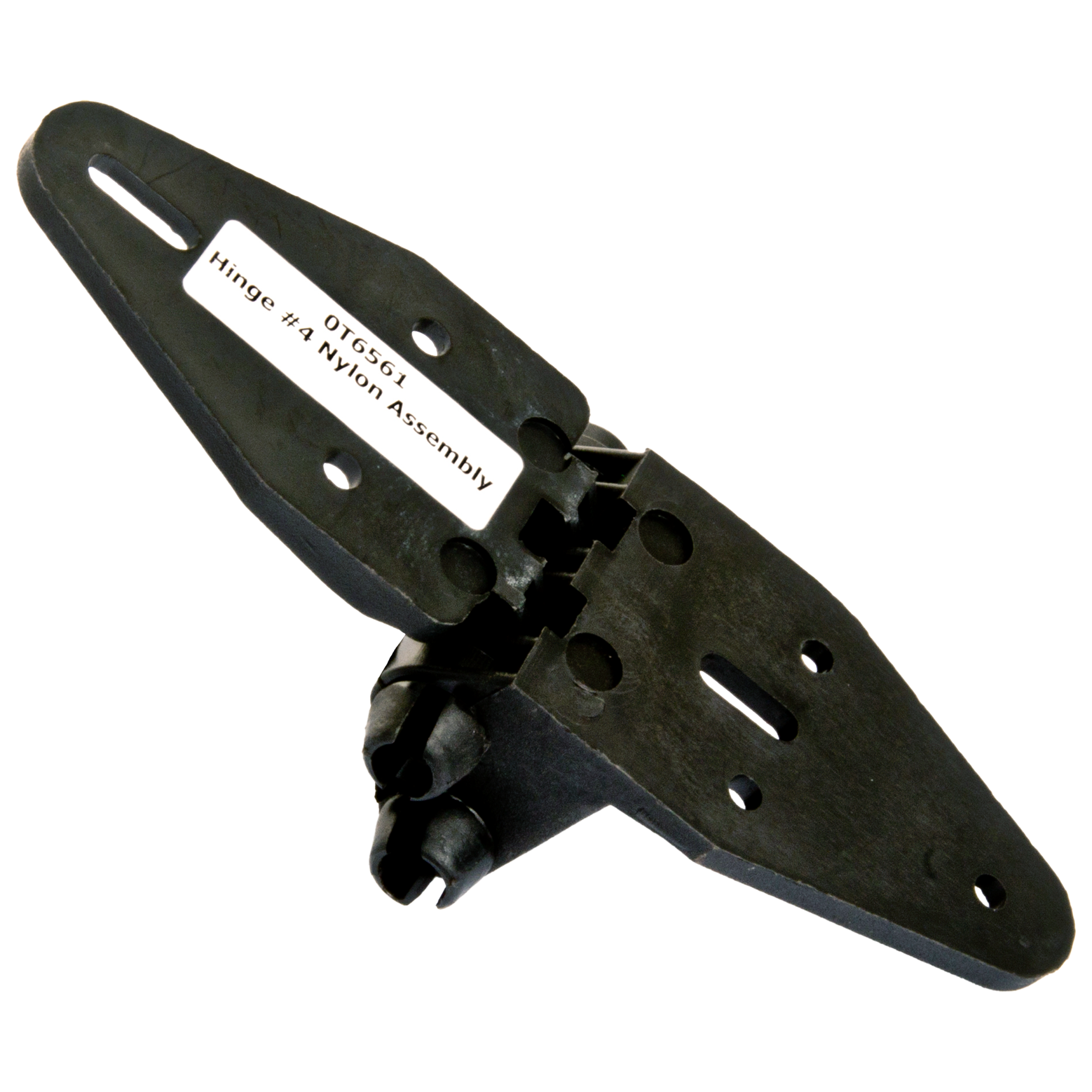This genuine B&D plastic hinge #4 (OT6561) is designed for sectional garage doors and is used to connect the fourth panel to the fifth panel of the door. Manufactured from durable engineered plastic, this lightweight and corrosion resistant hinge provides reliable articulation between door panels as the door travels along the curved sections of the track.