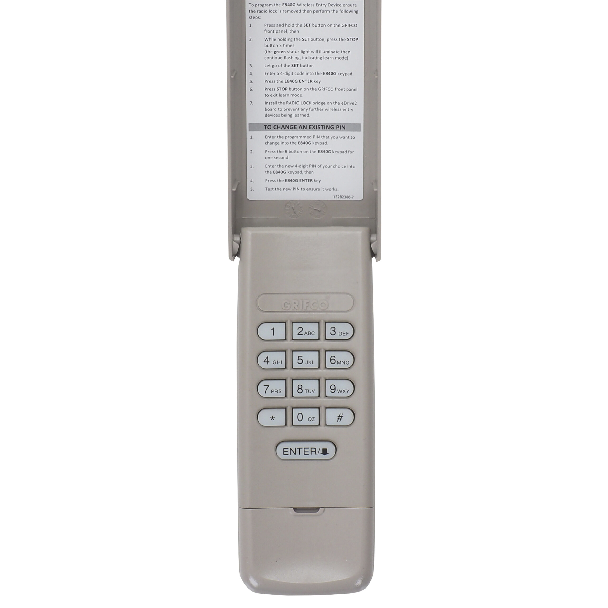 The E840G remote control allows you to open up a garage door opener via a pincode of your choosing. The E840G remote control features a rolling code encryption called Security+ 2.0, which generates a new code each time the button is pressed from over trillions of possibilities. By transmitting across three frequencies, the E840G all but eliminates interference problems, meaning your garage door will open with every press of the button. Due to the remotes high security, only your garage door remotes will ever open your gate or door preventing code grabbing devices from ‘replaying’ the code to open your garage door.